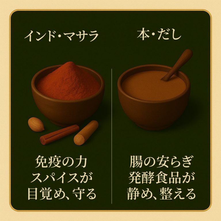世界初の インド・マサラ × 日本・だし フュージョン体験 コンセプト アーユルダシは、あなたが 味覚、香り、静けさを通じて「今」を深く味わう、 新しい食の体験です。 詳しく見る フレーバーコンセプト 健康コンセプト 「免疫 × 腸内ケア カラダに、深い余韻を」 テクニックを見る レシピを見る